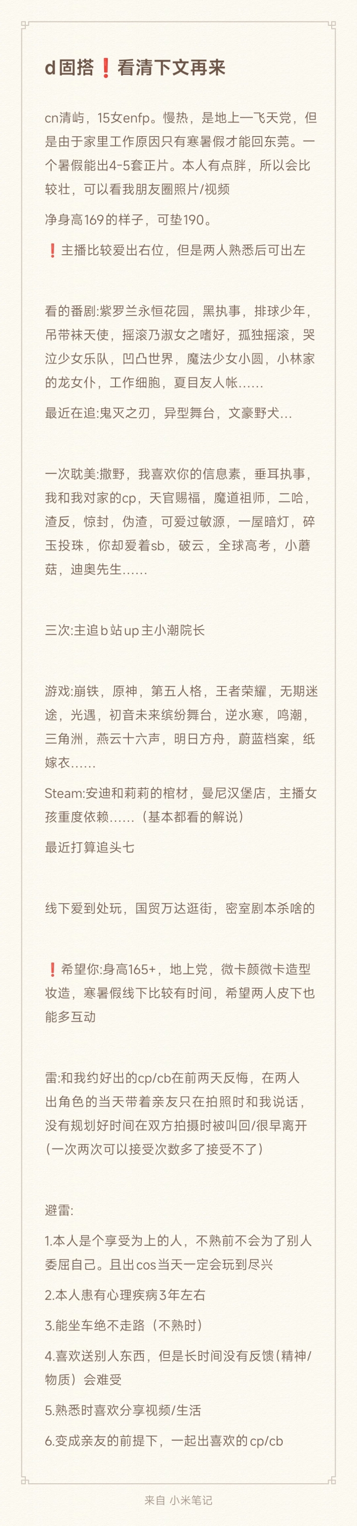2025-08-04 莞次元 1 评论 1 喜欢 分享 清屿 我只在乎你 查看TA的全部内容 +关注 莞咩咩 去发现更多有趣内容 微信扫码打开莞咩咩小程序 体验更多「莞咩咩」新功能 评论 1 作者 清屿 2025-08-04 0 我算是大骨架😭 我也来讲两句